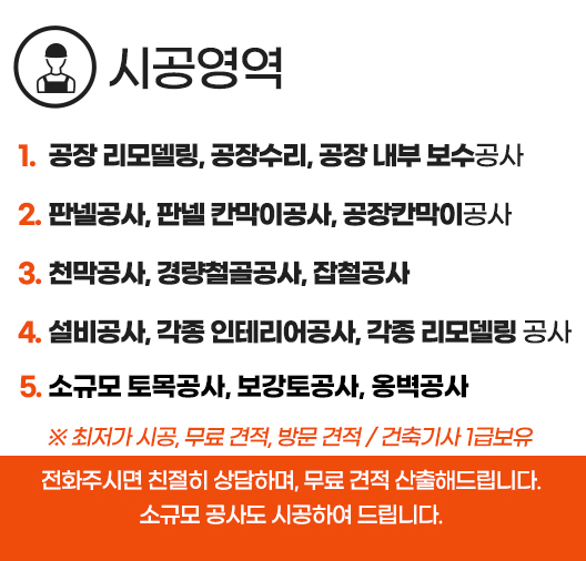 공장 리모델링, 판넬공사, 각종 리모델링 공사