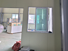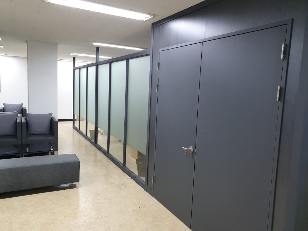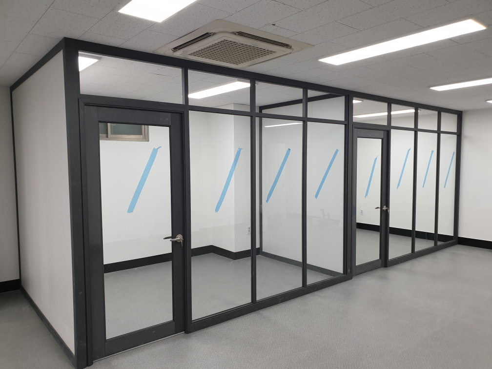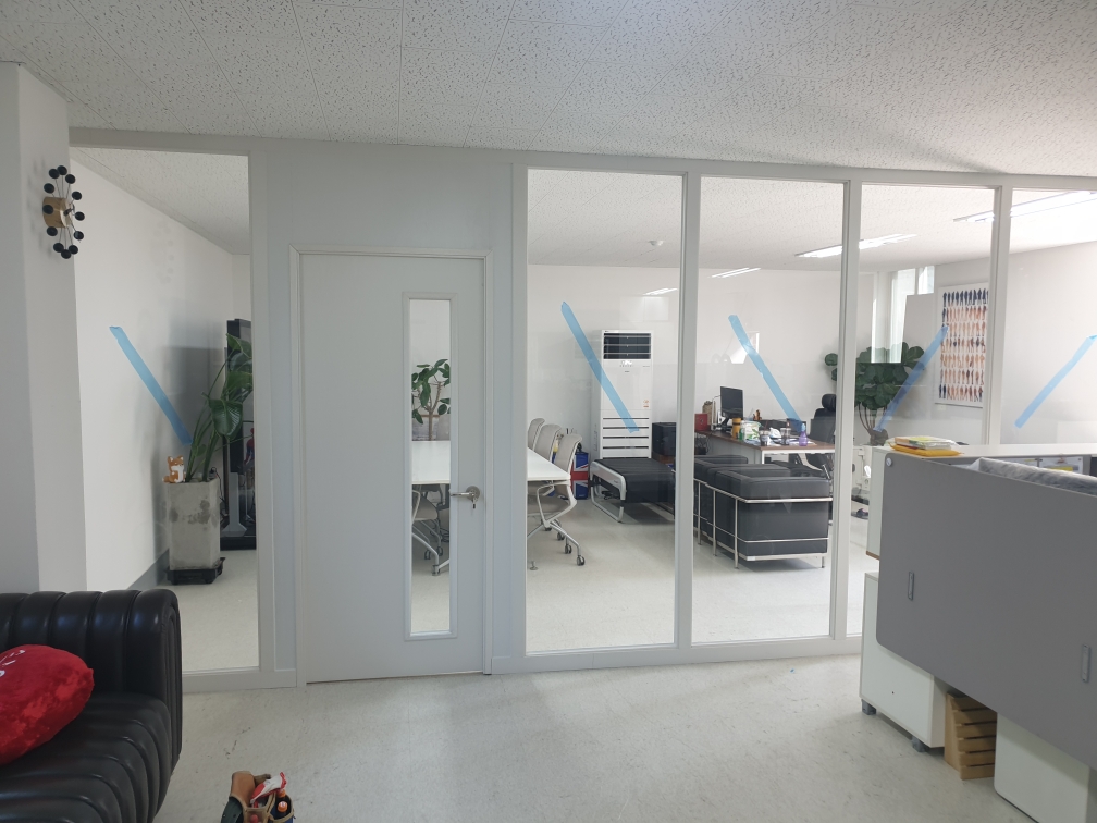 - 공장 사무실 내부의 유리칸막이, 근린건물 내부 유리칸막이